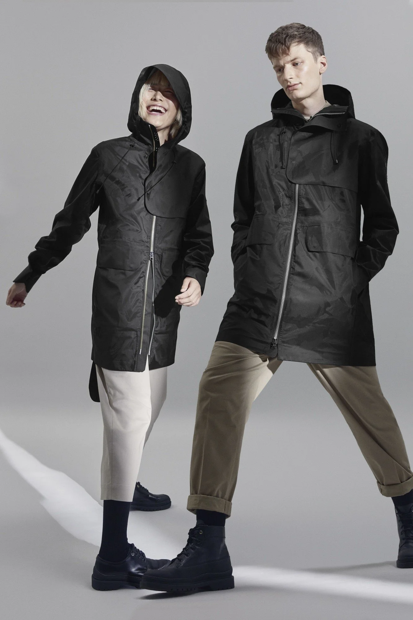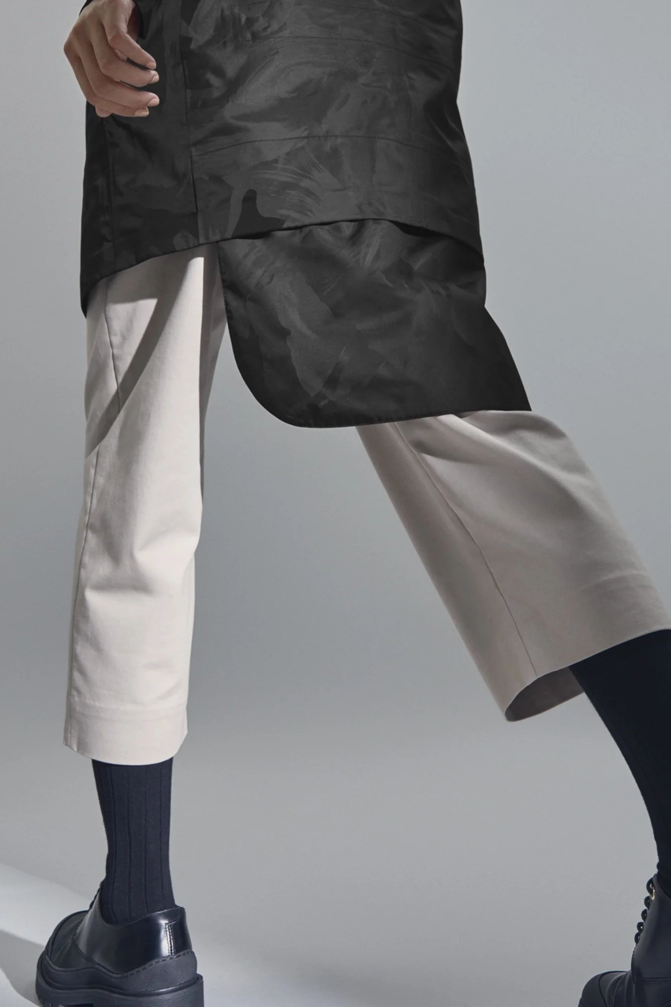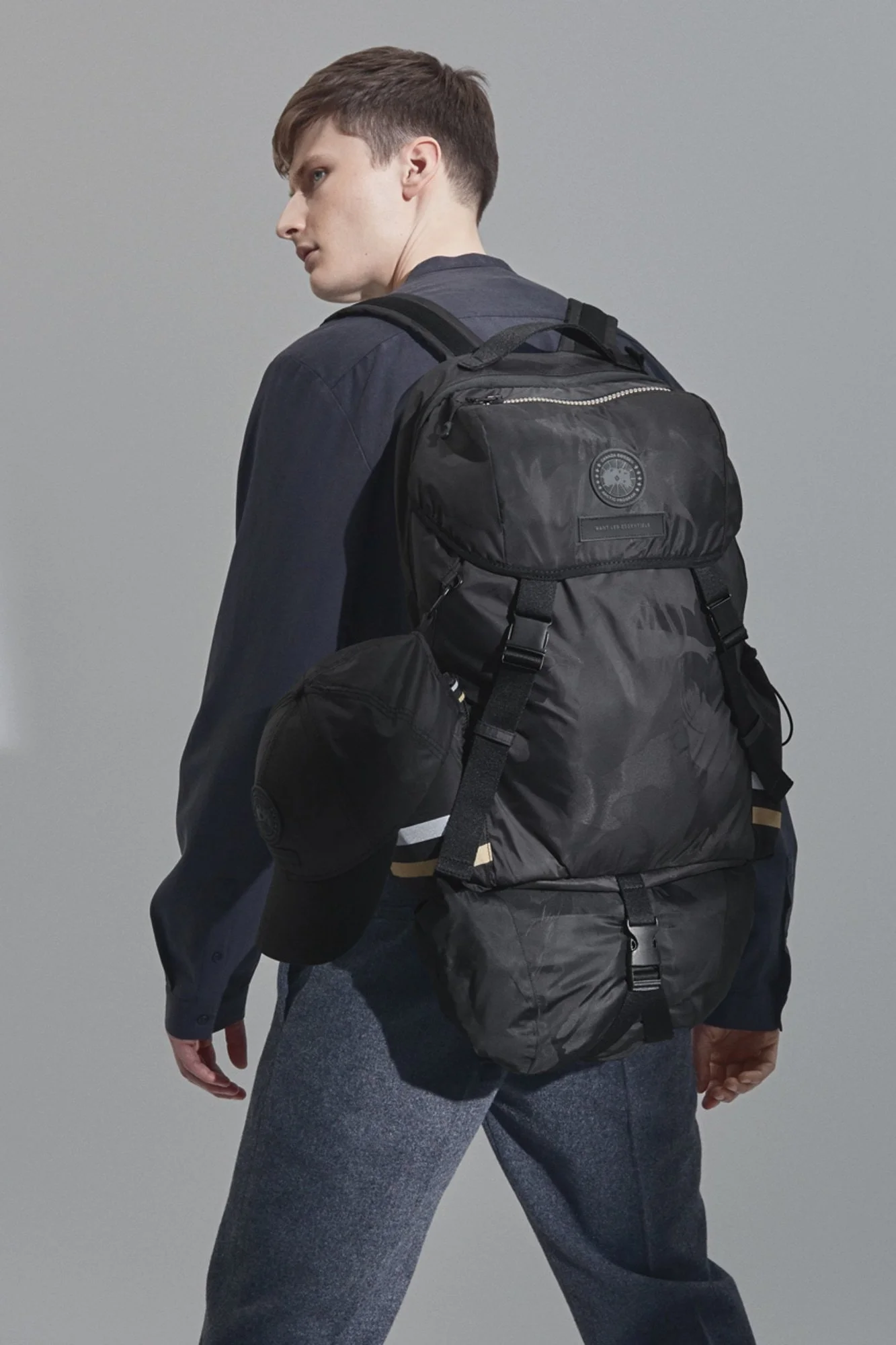 An elevated 4-piece modular collection crafted for the city dweller who navigates both concrete and drizzle with ease. The capsule features a rain jacket, a functional backpack, a versatile waist pack, and a streamlined cap; all cut from a waterproof camo jacquard that riffs on utility and city camouflage. The camo print nods to the hustle of the city while the jacquard texture brings a refined finish; each piece links by way of modular detailing so the wardrobe becomes a system rather than individual items. Designed as a cohesive set, the collection delivers performance, polish, and adaptability. For those who move through the city, rain or shine.